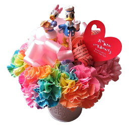 母の日 ディズニー 花 レインボーカーネーション入り フラワーアレンジメント ミッキー ミニー入り 生花使用母の日期間限定ギフト